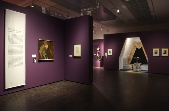Ob Egon Schiele als Doppelbegabung im Wien nach 1900 oder das Gesamtkunstwerk Leben im Berliner Atelier von Ernst-Ludwig Kirchner. Ob Paul Hindemiths Frankfurter Oper „Mörder, Hoffnung der Frauen“ als exemplarisches Bühnenkunstwerk nach Oskar Kokoschka oder die Ganzkörpermasken der Tänzerin Lavinia Schulz, die auf den Hamburger Künstlerfesten der 1920-er Jahre Furore machten: Der Expressionismus hat seine Zeit weitaus intensiver geprägt als bislang bekannt. Das Institut Mathildenhöhe Darmstadt realisiert deshalb in Zusammenarbeit mit dem Filmmuseum Frankfurt erstmals eine umfassende Ausstellung über die vitalen Netzwerke, die erstaunlichen Gesamtkunstwerke und genuinen Wechselwirkungen der künstlerischen Gattungen des Expressionismus. Der Gedanke an das große „Einheitskunstwerk“ bewegt die Akteure der „Brücke“ und des „Neopathetischen Cabaret“ ebenso wie die Künstler von Herwarth Waldens „Sturm“, das Team des Films „Dr. Caligari“ oder die Architekten der „Gläsernen Kette“ um Bruno Taut. Die interdisziplinäre Übersichtsschau auf der Mathildenhöhe Darmstadt vereint vor dem dramatischen zeitgeschichtlichen Hintergrund der Jahre vor, während und nach dem Ersten Weltkrieg rund 450 Werke – Gemälde, Filmausschnitte, Fotos, Plakate, Texte, Architekturskizzen, Musikstücke, Zeichnungen, Skulpturen und Zeitdokumente – zu einem bis dato einzigartigen Panorama der expressionistischen Epoche. Und entdeckt damit den Expressionismus neu.