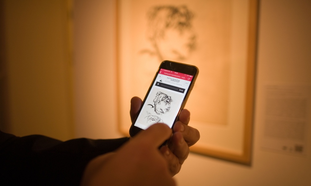 Dr. Philipp Gutbrod stellt den zweisprachigen Audioguide und die App-Veknüpfung zu Facebook und Twitter vor