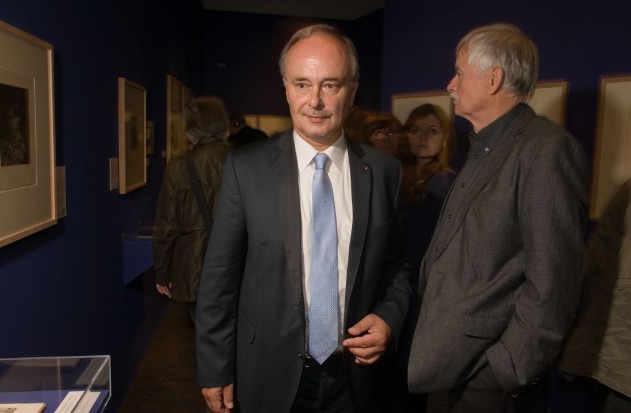 Herr Dr. Helmut Müller (Geschäftsführer vom Kulturfonds Frankfurt RheinMain) freut sich über eine weitere Ausstellungeröffnung im Rahmen des Gemeinschaftsprojekts "Ludwig Meidner - Seismograph"