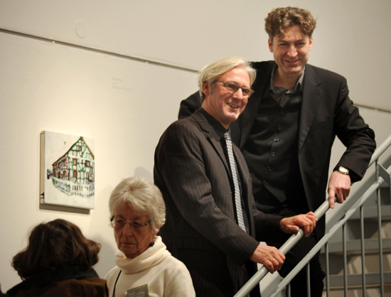 Jochen Partsch, Oberbürgermeister der Wissenschaftsstadt Darmstadt, wünscht Ankabuta viele begeisterte Ausstellungsbesucher. Foto: Marcus Kaufhold © Institut Mathildenhöhe Darmstadt