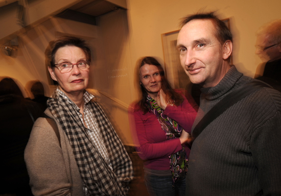 Ankabuta bringt alte Bekannte zusammen: Dorothee von Windheim, Künstlerin und Professorin an der Kunsthochschule Kassel, und ihr ehemaliger Student, der Künstler Martin Brüger mit seiner Frau. Foto: Marcus Kaufhold © Institut Mathildenhöhe Darmstadt